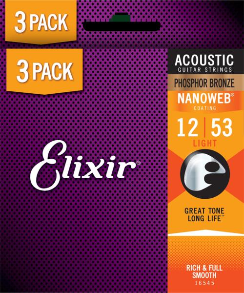A készlet húrjainak méretei: . 12 . 16 . 24 . 32 . 42 . 53A NANOWEB technológiával bevonatolt Elixir® Akusztikus Phosphor Br
