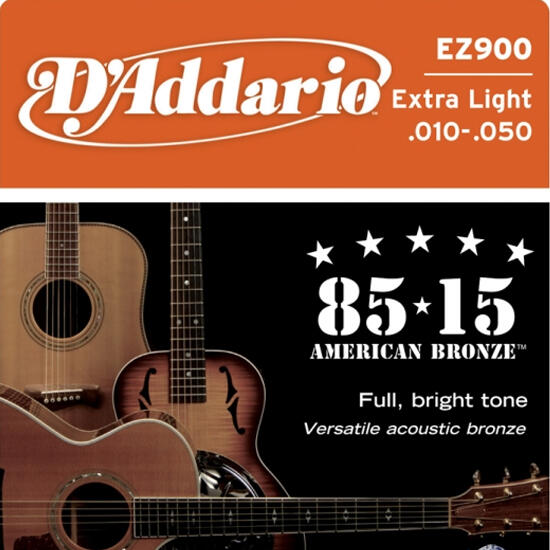 D'ADDARIO EZ900 BRONZE ROUND WOUND EXTRA LIGHT Akusztikus Gitár Húrkészlet 010-050 Great American Bronze húrok a 80/15 foszforbronz ötvözet bevonatnak köszönhetően csengő hangzást és hosszú élettartamot nyújtanak.