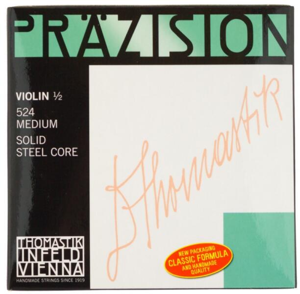 húrkészlet hegedűhöz: szett 1/2-es hegedűhöz, Precision széria, kristálytiszta hangzás, kiemeli a játék legapróbb nüanszait is, acél mag, króm bevonat, húrvastagságok: 520, 521, 522, 523, kézzel készített húrok