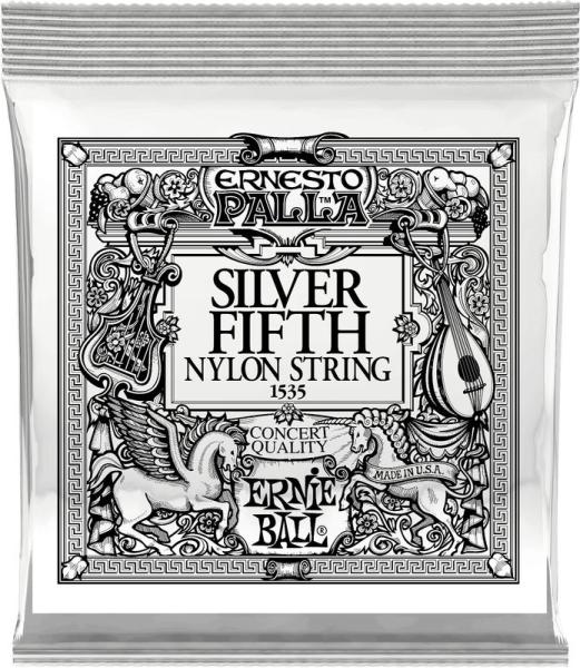 Nylon klasszikus gitárhúr, A5-as darabhúr ezüst bevonattal A gyártás során egy ezüstözött rézszálat tekerünk körbe egy nylon szálakból sodrott vezetőszálon (több száz vékony szálból készül) Átmérő 030