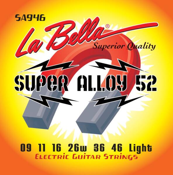 LaBella SA946 Elektromos Gitár Húrkészlet SUPER ALLOY 52 Light 009-046 LaBella SA946 Elektromos Gitár Húrkészlet SUPER ALLOY 52 (52% Nickel-48% Iron) 009, . 011, . 016, . 026w, . 036, . 046 Light Made in USA