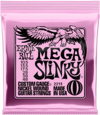Az Ernie Ball Mega Slinky húrok az Ultra Slinky és Power Slinky húrok között képeznek egy lépcsőt. Ezek a húrok a precíz gyártásnak köszönhetően tökéletes összetételűek, optimális játékérzetet biztosítanak és hosszú élettartamúak. A Mega Slinky sodort húrjai nickel bevonatú acélhúrok melyek egy hatszögletű acél vezetőszál köré vannak tekerve. A sima húrok v