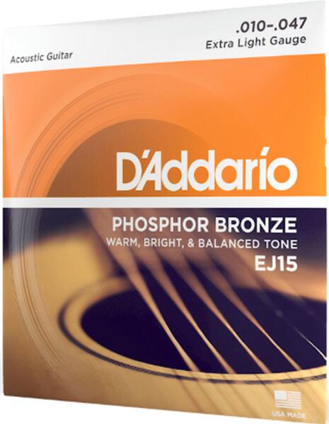 D'ADDARIO EJ15 PHOSPHOR BRONZE EXTRA LIGHT Akusztikus Gitár Húrkészlet 010-047 1974-ben a foszforos bronz húrok kifejlesztésével a D’Addario forradalmasította az akusztikus gitárok világát. Tiszta, ragyogó hangzás jellemzi őket, gyakori játék mellet is hosszú élettartamúak.