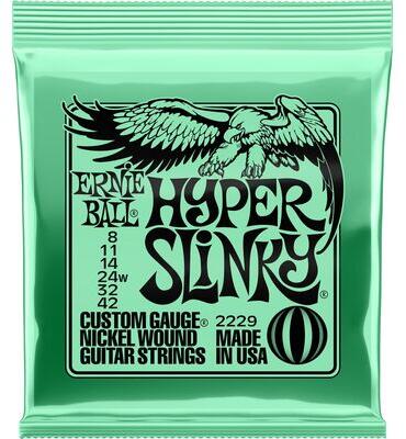 Ernie Ball 2229 Nickel Wound Hyper Slinky 8-42 elektromos gitárhúrAz Ernie Ball Hyper Slinky húrok az Extra Slinky és Super Slinky húrok között képeznek egy lépcsőt, ezzel biztosítva egy könnyű, gyors érzést lényegesen kisebb ellenállással a magasabb húrokon. Kifejezetten azon zenészeknek lett kifejlesztve akik keresik a még könnyedebb játékérzetet minimális különbségg