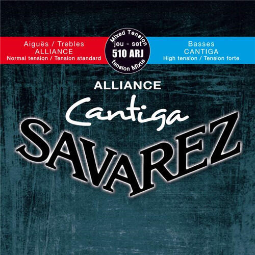 Savarez klasszikus gitár húrok Cantiga 510 Az Alliance Cantiga-Serie kombinálja az Alliance Carbon (Fluorocarbon/ PVDF) Diskant húrokat a legkedveltebb Cantiga basszussal 510ARJ Mixed tension szürke csomag piros-kék csikokkal. Diskant normal, Bass highdarab. Húrok: E1=655.911, H/B2=655.912, G3=655.913, D4=656.264, A5=656.265, E6=656.266 Átmérő és feszültség: E-1: 0,62 mm / 0,024 hüve