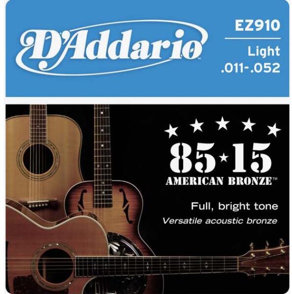 D'ADDARIO EZ910 BRONZE ROUND WOUND LIGHT Akusztikus Gitár Húrkészlet 011-052 Great American Bronze húrok a 80/15 foszforbronz ötvözet bevonatnak köszönhetően csengő hangzást és hosszú élettartamot nyújtanak.