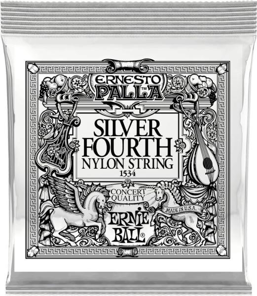Nylon klasszikus gitárhúr, D4-es darabhúr ezüst bevonattal A gyártás során egy ezüstözött rézszálat tekerünk körbe egy nylon szálakból sodrott vezetőszálon (több száz vékony szálból készül) Átmérő 030
