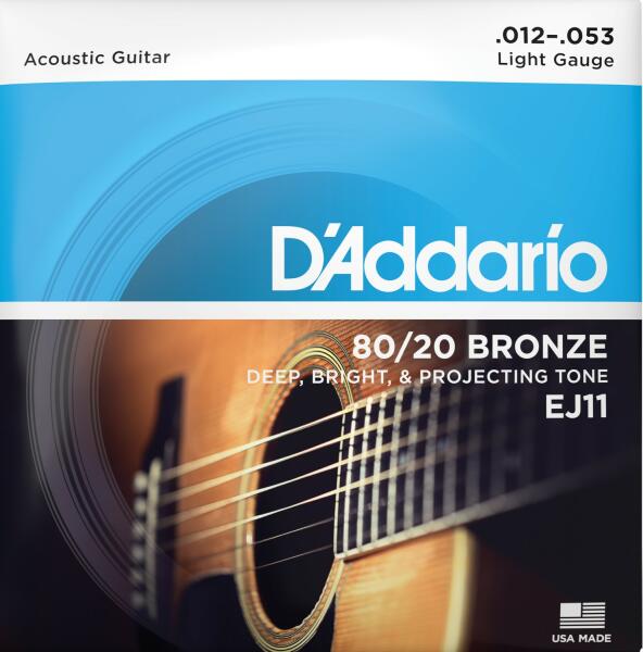 D'Addario EJ11 80/20 bronz akusztikus gitárhúr, Light 12-53 80/20 arányú bronz ötvözet húrvastagság: . 012 . 016 . 024 . 032 . 042 . 053 csilingelő magas és ütős mély hangzás