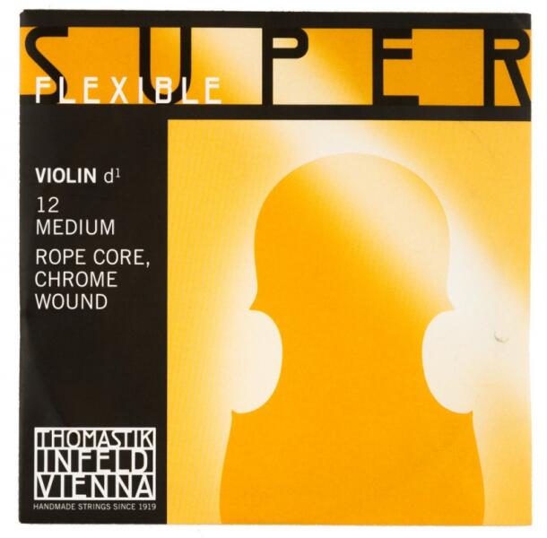 különálló húr hegedűhöz: "D" húr 4/4-es hegedűhöz, Superflexible széria, rendkívüli flexibilitás, hosszú élettartam, stabil hangolás, tiszta hangzás, acél mag, króm palást, kézzel készített húr