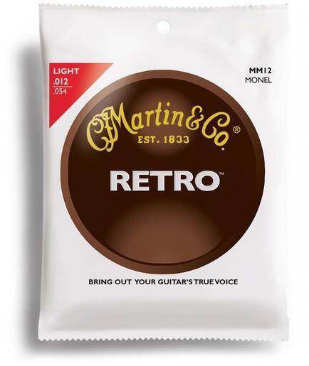 MARTIN MM12 Martin Retro Akusztikus Gitár Húrkészlet Monel, 12-54 Light MM-12 Martin® Retro® akusztikus gitárhúrok kialakítása megegyezik a bronz húrok előtti időszakban gyártott, nikkel alapú ötvözetből készült akusztikus húrokéval melynek meleg, lágy és a hangszer hangját jobban érvényesítő tulajdonságai vannak. A monel ötvözet (2/3 nikkel, 1/3 réz) egy nagyon kor