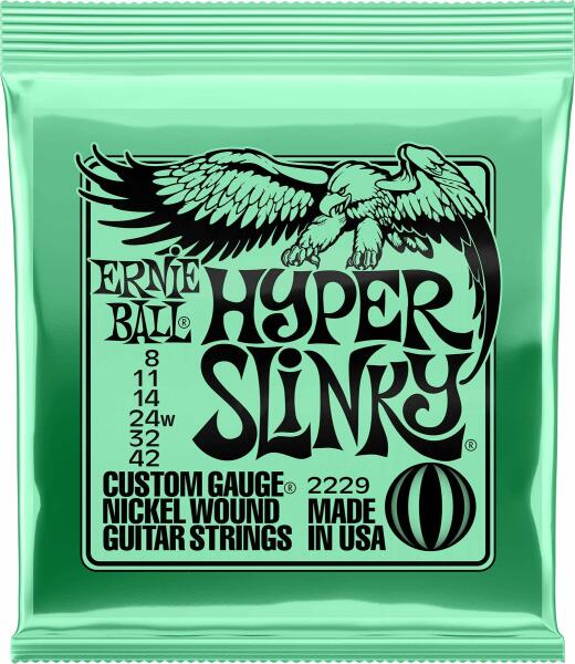 Az Ernie Ball Hyper Slinky húrok az Extra Slinky és Super Slinky húrok között képeznek egy lépcsőt, ezzel biztosítva egy könnyű, gyors érzést lényegesen kisebb ellenállással a magasabb húrokon. Kifejezetten azon zenészeknek lett kifejlesztve akik keresik a még könnyedebb játékérzetet minimális különbséggel a Super Slinky húrjainkhoz képest. A húrok átmérője . 008 .