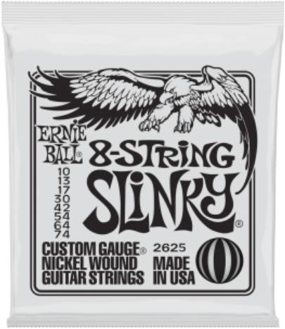 Az Ernie Ball 8 String Slinky húrok széleskörben nagyrabecsült húrok a világszínvonalú hangjuknak köszönhetően. Ezek a húrok a precíz gyártásnak köszönhetően tökéletes összetételűek, optimális játékérzetet biztosítanak és hosszú élettartamúak. A 8 String Slinky sodrott húrjai nickel bevonatú acélhúrok melyek egy hatszögletű acél vezetőszál köré vannak tek