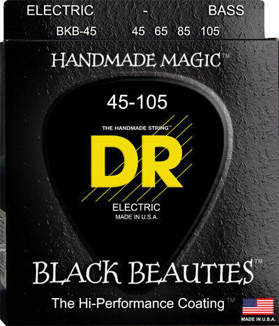 húrkészlet: szett elektromos basszusgitárhoz, Black Beauties széria, K3 palást, húrvastagságok: 045-065-085-105, Medium, kézzel készített húrok, USA gyártmány, elegáns fekete szín, rendkívül hosszú élettartam