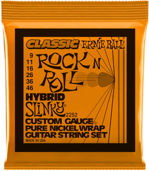Ernie Ball Slinky Classic Rock N Roll Pure Nickel bevonatú elektromos gitárhúrok tiszta nikkel huzalból készülnek, amely ónnal bevont hatszögletű acélmaghuzal köré van tekerve. Ezek a gitárhúrok meleg, gazdag hangzást biztosítanak a jellegzetes Slinky érzéssel. Méretek: . 009, . 011, . 016, . 026, . 036, . 046