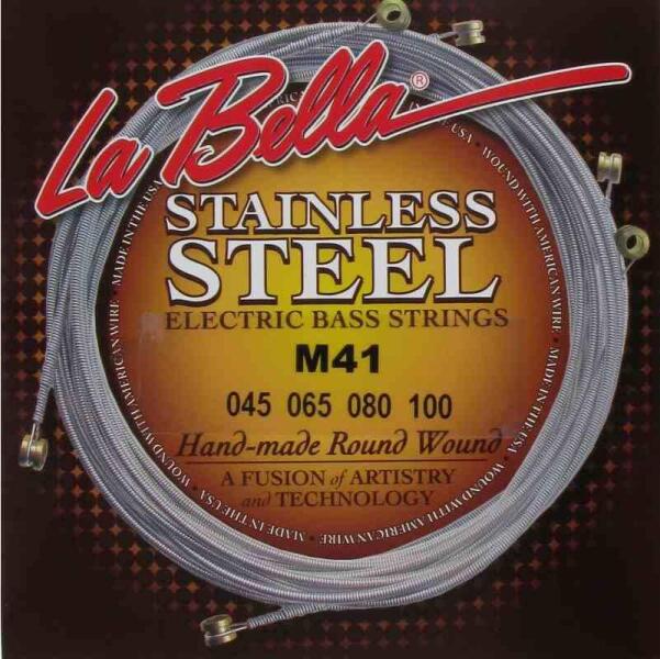 LaBella M41 4-Húros Basszusgitár Húrkészlet Stainless Steel Custom Light, 45-100 LaBella M41 4-Húros Basszusgitár Húrkészlet Acél húrok 045, . 065, . 080, . 100 Custom Light Made in USA