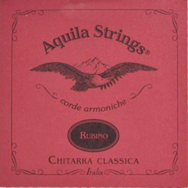 Kitűnő minőségű Aquila klasszikus gitár húrkészlet: standard feszítettség, Rubino széria, Nylton anyagból készült húrok, a Nylton technológia az anyag sűrűségére és súlyára helyezi a hangsúlyt a vastagság növelése helyett, így a húrok közti különbség kisebb, mint az átlagos szettek esetében