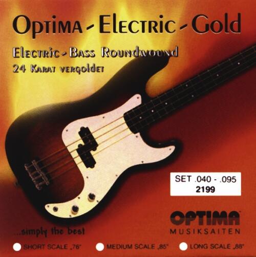 OPTIMA 2199 680415 Bas szusgitár 4 Húros Húrkészlet Gold Strings Round Wound Light Round Wound Gold arany basszusgitárhúrok Long Scale 2199. Light . 040 . 055 . 075 . 095