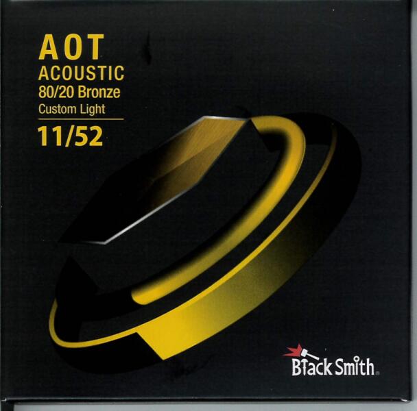 Nano-Carbon Shield AOT bevonatos 80/20 bronz akusztikus húr . 011 - . 015 - . 022 - . 032 - . 042 - . 052A BlackSmith akusztikus gitár húrok a legkiválóbb alapanyagokból készülnek a legmodernebb tekercselő berendezés használatával. Az USA-ban gyártott 80/20 bronz és acél hosszú élettartamot és megnövelt hangkitartást biztosít. Számítógépvezérelt technológiával egyenlete