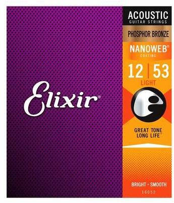 A NANOWEB technológiával bevonatolt Elixir® Akusztikus Phosphor Bronze húrok meleg, csillogó hangú húrok az Elixir-től elvárt hosszú élettartammal. A készlet húrjainak méretei: . 12 . 16 . 24 . 32 . 42 . 53 Az Elixir az egyetlen bevonatos húrfajta, amelyiknél a teljes húrfelületet védi a hártya-vékony bevonat, távol tartva a lerakódásokat (zsír, por, sör stb. ) a tekercse