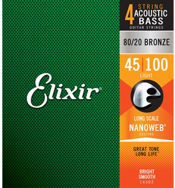 Elixir 80/20 Bronze NanoWeb (14502) 045-100 Light akusztikus basszusgitár húrkészletAz Elixir NanoWeb-technológia egy speciális, hártya-vékony bevonat a húrokon, ami meggátolja, hogy az ujjadról bármilyen szennyeződés (elhalt hámsejt, zsír, kosz stb. ) rakódjon le a spirális tekercselés közé. Ennek köszönhetően sokkal tovább megőrzi az "új húr hangzását", és megelőzi