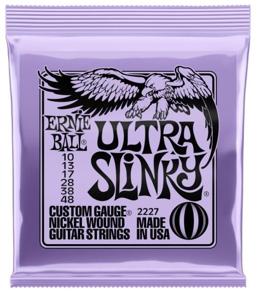 Az Ernie Ball Ultra Slinky húrok azoknak a zenészeknek lettek kitalálva akik kedvelik a Regular és Power Slinky húrok kombinációját. Ezek a húrok a precíz gyártásnak köszönhetően tökéletes összetételűek, optimális játékérzetet biztosítanak és hosszú élettartamúak. Az Burly Slinky sodort húrjai nickel bevonatú acélhúrok melyek egy hatszögletű acél vezetőszál k
