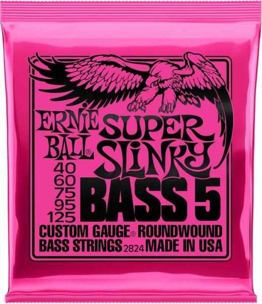 5-húros, nikkel bevonatú acél húr, 040-125 Vastagságok: . 040 . 060 . 075 . 095 . 125 Az Ernie Ball Slinky Basszusgitár húrok körbetekercseltek a maximális tisztaság és komoly attak érdekében. Mindegyik baszzusgitár húr a legjobb és "legfrissebb" alapanyagokból készül a gyönyörű Coachella völgyben Dél Kaliforniában. Az endorserek listája akik az Ernie Ball Bass Slinkyt ha