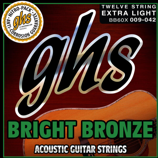 GHS BB60X akusztikus gitárhúr 12 húros, Bright Bronze - Extra Light, 9-42A Bright Bronz ...