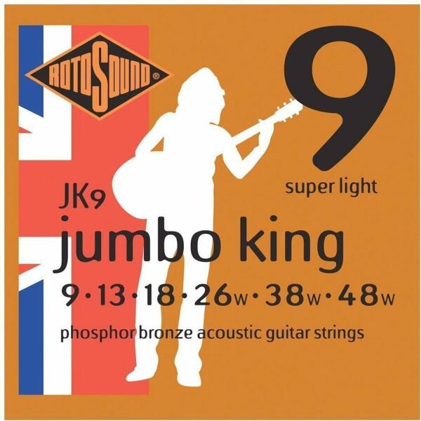 Foszfor bronz húrszett akusztikus gitárhoz a Jumbo King szériából. 92/8 arányú ötvözet, huzagolt Mély a zongorahúrokhoz hasonló hangkép Egyenletes és telt hangzás Specifikációk: Keménység: . 009, . 013, . 018w, . 026w, . 038w, . 048w Borítás: huzagolt (round wound) Anyaga: foszfor bronz Mag: acél Végződés: golyós (ball end) Vastagság: 9, super light