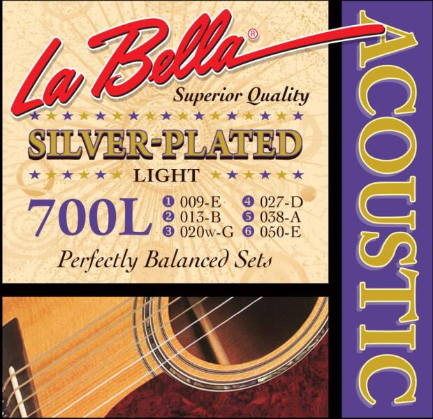 LaBella 700L Akusztikus Gitár Húrkészlet Silver-Plated Light, 010-050 LaBella 700L Kiváló minőségű Akusztikus Gitár Húrkészlet . 009, . 013, . 020W, . 027, . 038, . 050 Light Made in USA