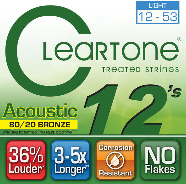 CLEARTONE CT7612 Akusztikus Gitár Húrkészlet Bronz Light 12-53 12-16-25-33-43-53 Utálod a bevonatos húrokat? Mi tudjuk miért... A legtöbb bevonatos húr olyan rétegeket használ, amik megölik a hangszínt, gátolják a vibrációt. Azaz hiába hosszabb a húr élettartama, ha a hangzás nem az igazi. Ezzel szemben a Cleartone az iparágban létező legvékonyabb bevonatot alkalmazza: a r