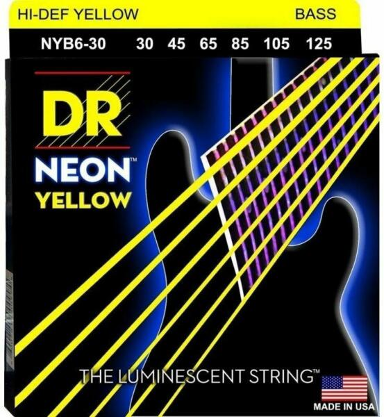 Strings basgitraru 6-húr, Sorozat: Neon-sárga, nikkelezett acélból, Set: Közepes 6 féle 30-125