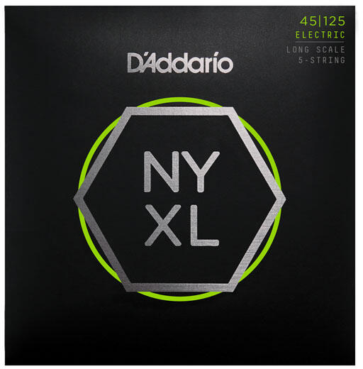 D'addario NYXL45125 5-húros basszus gitárhúr Speciális tekercselő- és bevonatkezelő technológiával készült High-Carbon-fémötvözetű kiegyensúlyozott, sokoldalú húrok A hagyományos nikkelezett húrokhoz képest megnőtt hangstabilitás – a NYXL húrok hangolása gyorsabb, a hangolást hosszabb ideig tartják Kellemes játékérzetet biztosító nikkel bevonat Nagyobb dinamika é