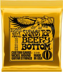 Az Ernie Ball Skinny Top Beefy Bottom húrok a Regular Slinky könnyebb játszhatóságát kombinálják a Beefy Slinkynél kicsit markánsabb vastagságú sodrott húrokkal. Ez a kombináció a legjobb választás azoknak a zenészeknek akik imádják a gyönyörű nyújtott szólókat miközben a riffeknél élvezhetik a vastagabb tónust. A húrok átmérője . 010 . 013 . 017 . 032 . 044 . 054