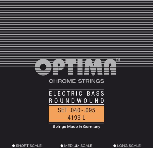 OPTIMA 4199 680525 Basszusgitár Húrkészlet Króm Round Wound Short Scale Light Chrome roundwound króm basszusgitárhúrok 4199. Light . 040 . 055 . 075 . 095