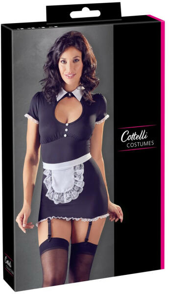 Pajkos, teljesen testhezálló, szobalány ruha, izgalmas szerepjátékokhoz! A szett tartalma: Nyakpántos, harisnyatartós ruha Fehér kötény Miért jó? Minőségi, ruganyos anyag - kényelmes, komfortos Egyedi, csipke fodrokkal, fehér gombokkal, gallérral és fehér köténykével megbolondítva - izgalmas, erotikus dizájn, szexi jelmezként is viselhető Gombos nyakpántos kialakítás S