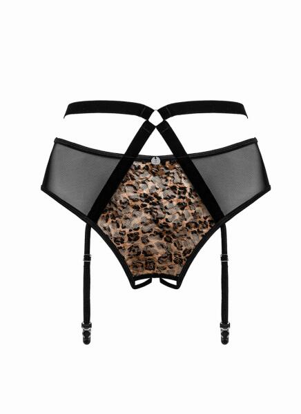 This sexy suspender belt with open crotch by Obsessive adds a delicious twist to an exciting evening! Wear the belt under a dress with a pair of beautiful stockings and surprise your partner with the ultimate seduction. The belt features playful lines and a provocative leopard print. The buttocks are mostly uncovered and the suspender straps are adjustable. The stretchy material makes for a beauti
