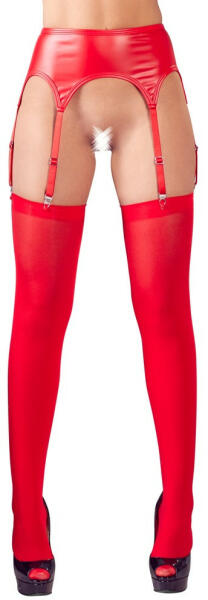 Dögös vörös harisnya és harisnyatartó, látványos, fényes megoldásokkal, mely feltüzeli a kedélyeket! A szett tartalma: 1 pár (2db) harisnya (combig érő fazon) 1db fényes harisnyatartó Miért jó? Nagyon rugalmas, kényelmes anyag Fényes hatású harisnyatartó - vadító megjelenés Oldalanként 3-3 harisnyatartó pánt - biztos tartás Harisnyatartó pántok állíthatóak - egy