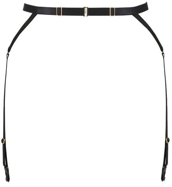Obsessive Bravelle harisnyatartó. Erős, csipkével díszített, fekete anyagból készült harisnyatartó. Különlegessége hogy elöl kettő, hátul pedig egy fűzős részt találunk, ami nem csak díszítésként szolgál, hanem ott méretre is igazíthatjuk. A fűzős részek hosszanti merevítésekben végződnek, melyek mintegy fűzőként, alakformáló funkcióval is bírnak. A szerkeze