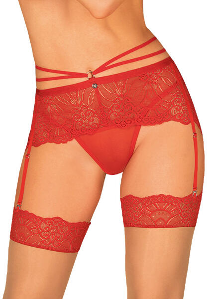 Obsessive Atenica harisnyatartó pánt Finom, puha és rugalmas, áttetsző anyagból készült harisnyatartó, mely érdekes, egyik oldalt elkeskenyedő kivitelben készült. A harisnyákat két méretre állítható, rugalmas tartópántra illeszthetjük rá, melyeket oldalt találunk meg. 3*3 kapocs sorral méretre állítható, a kesekenyebbik oldalán. A harisnya sajnos nem része a szettnek.