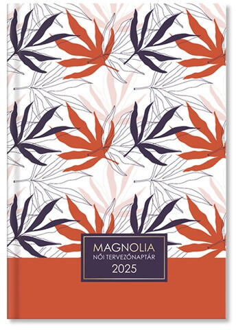 Határidőnapló Period Magnólia B/6 napi női tervező Orange 2025 Méret: 115x165 mm Terjedelem: 352 oldal (320 naptároldal, 2026 januári tervező, különféle jegyzet- és tervezőoldalak) Naptárbeosztás: hétköznap 7–20 órás, 30 perces osztásban Papír: 70 g/m2 ofszet, fehér Nyomás: 2+2 szín, szürke-rózsaszín Naptárfedél: UV lakkozott színes papír Kötészet: cérnafűzö