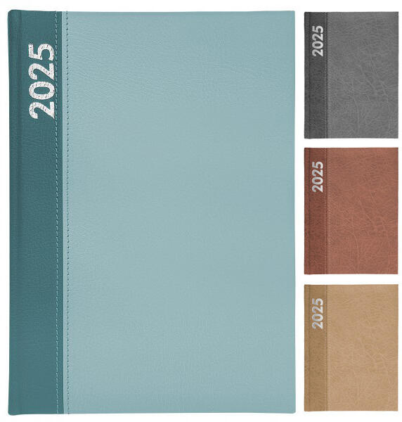 Napi beosztás, fehér papíron egy színnel nyomva, 14 oldal szakszöveg, 368 oldal napló, 18 oldal ábécémutató, színes térképpel, műbőr keménytábla, évszámnyomással. A szombat és a vasárnap külön oldalon van. A "Választható színek"-re kattintva tudsz színt választani.