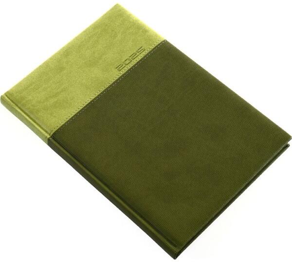 Realsystem 2025 PrémiumA 9322-78 A5 napi beosztású zöld határidőnapló Exkluzív műbőrök, íves varrással, jelzőszalaggal és sarokperforációval. A5 napi beosztású, 352 oldal, cérnafűzéssel, 70 g-os chamois papírral. Egyediesítés: vakdombor, fémsarok (arany/ezüst). Méret: 145x205 mm