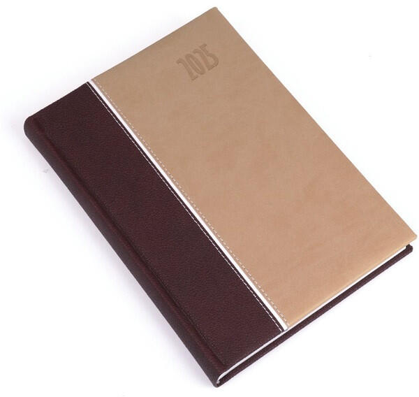 Realsystem 2025 Kensington 5321-76 A5 napi beosztású barna határidőnapló Struktúrált és sima műbőr variáció, vászoncsíkkal, díszöltéssel, kedvelt színkombinációkban. A5 napi beosztású agenda, 352 oldal, cérnafűzéssel, 70g-os fehér papírral, jelzőszalggal, sarokperforációval. Egyediesítés: présfólia, vakdombor, fémsarok (arany/ezüst). Méret: 145x205 mm