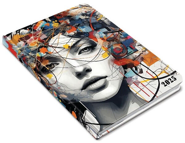 Realsystem 2025 Fiestina 5411-66 face B6 zsebnaptár 3D-lakkal felületnemesített, kemény táblával, lekerekített sarokkal és színes gumiszalaggal biztosított B6 méretű zsebnaptár. Heti beosztású, 160 oldal, 70g fehér papírral, cérnafűzéssel, jelzőszalaggal és sarokperforációval. Méret: 115x165 mm (B6)