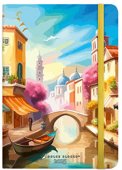 Határidőnapló DOLCE BLOCCO Secret Diary Venice B/6 napi keménytáblás gumis 2025. B6 méretű, keménytáblás, soft touch fóliázott, vakdomboros, gumis rögzítővel ellátott napi tervező naptár jelölőszalaggal, heti-havi összesítővel, jegyzetoldalakkal, 352 oldal, Méret:120x170 mm
