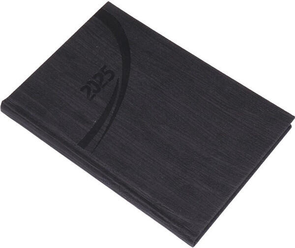 Realsystem 2025 Fashion 5300-03 A5 grafit heti beosztású határidőnapló Merészen strukturált felületű, magas minőségű műbőr, egyedi vakdombornyomással, jelzőszalaggal és sarokperforálással. A5 heti beosztású agenda, 144 oldal, cérnafűzéssel, 70g-os fehér papírral. Egyediesítés: présfólia, vakdombor, fémsarok (arany/ezüst). Méret: 145x205 mm