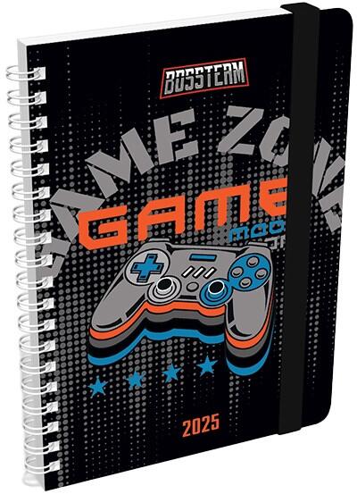 B6 méretű, spirálozott, gumipántos, heti tervező naptár, matrica oldallal, 128 oldal, 120x166 mm