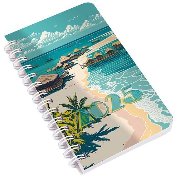 Realsystem 2025 SP2 8711-54 tropical heti beosztású spirálos zsebnaptár Ikerspirállal összefűzött naptárak heti, illetve napi beosztással. SP2 heti beosztású, 160 oldal, spirálozott, 70g-os fehér papírral. Egyediesítés: szita. Méret: 95x171 mm