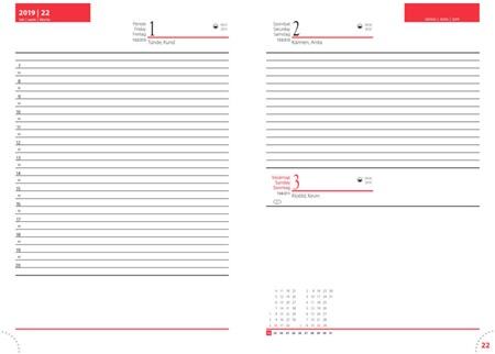 Vastag, puha, speciális felületű anyagból készült borító, az igényes darabok kedvelőinek. Divatos, trendi színek és design. -időbeosztás: félórás, 8-18.00 h -lapok 70 g/m2, fehér ofszet papírból -szürke-vörös nyomat -jelzőszalaggal -sarokperforáció -Budapest és Magyarország térképpel -havi összesített naptár -éves tervező -telefonregiszter/jegyzetoldalak -hasznos