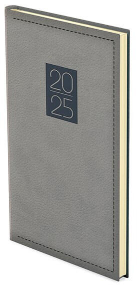 Zsebnaptár TOPTIMER Classic C035 álló sárga lapos szürke 2025. Prégelt, bőrhatású, hőre színeződő műbőr bevonóval készült naptár, díszkerettel és elegáns évszámmal. Chamois (krémszínű) tömbös naptár, színes oromszegővel, jelzőszalaggal és sarokperforációval. Vaknyomással és lézergravírozással emblémázható